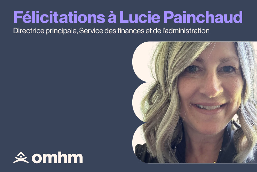 Nous sommes heureux d’annoncer la nomination de Lucie Painchaud, CPA, à titre de Directrice principale – Service des finances et de l’administration à l’Office municipal d’habitation de Montréal.