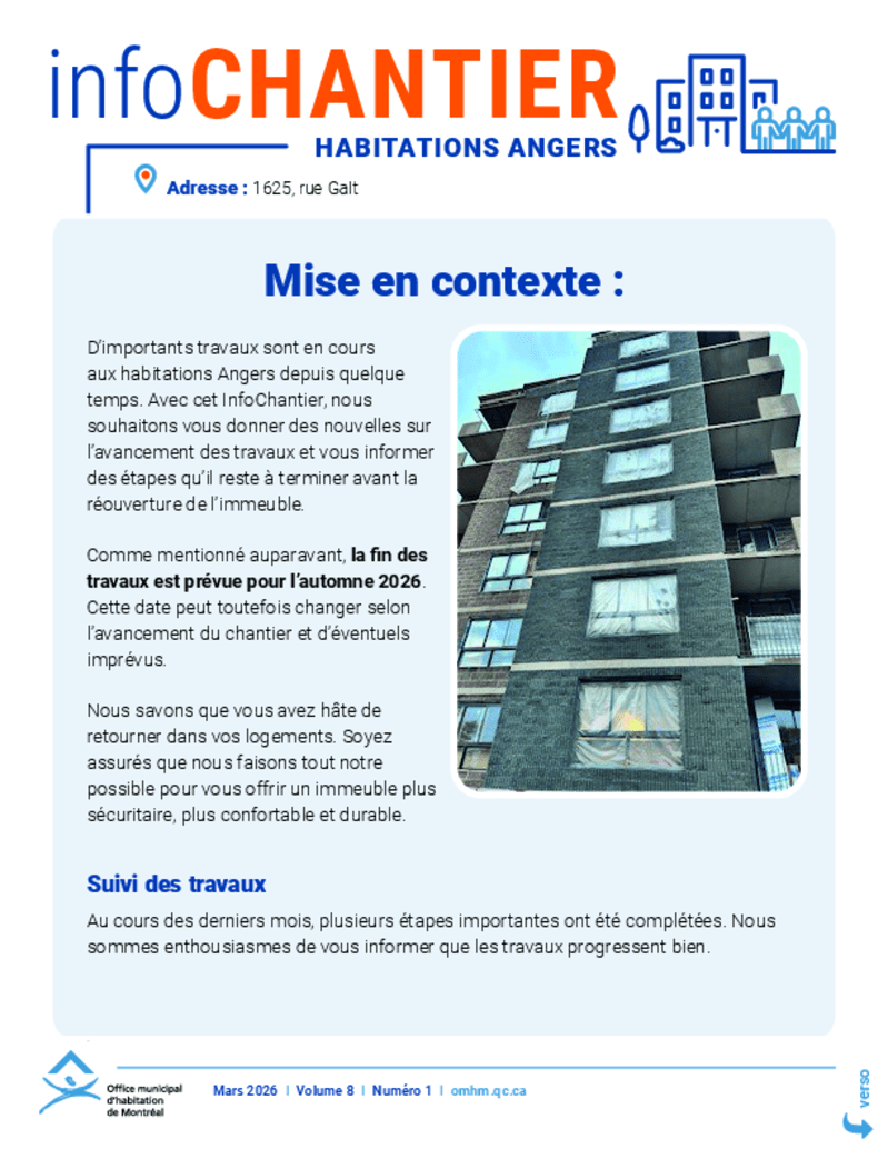 Consultez l'INFOCHANTIER pour avoir des nouvelles concernant les travaux aux habitations Angers.